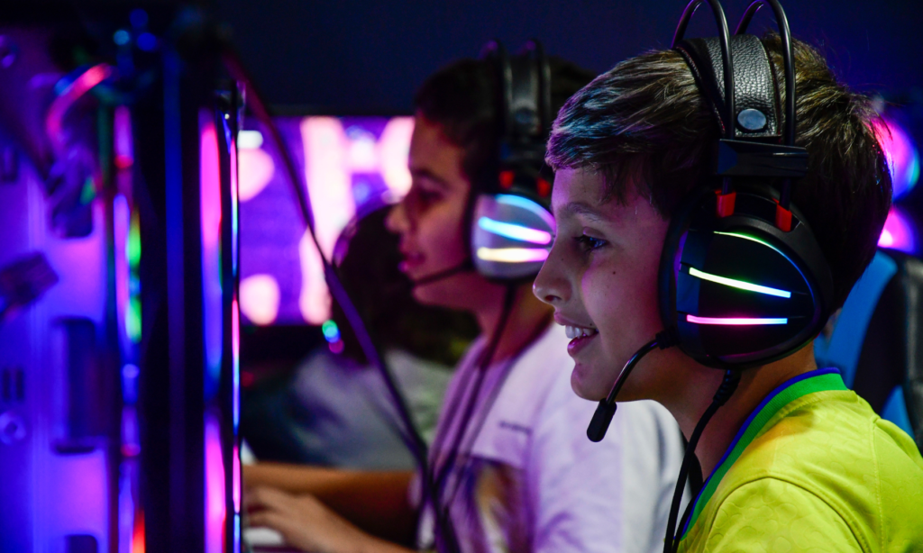 O espaço Arena Games recebe público de todas as idades no ESX 2023 para apresentar jogos produzidos por desenvolvedores capixabas e mostrar que é possível trabalhar na área no Espírito Santo.